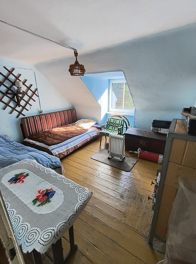 - rozkład pomieszczeń: Parter : łazienka, salon z aneksem kuchennym, sypialnia. Piętro : sypialnia plus dodatkowe pomieszczenie do zaadaptowania